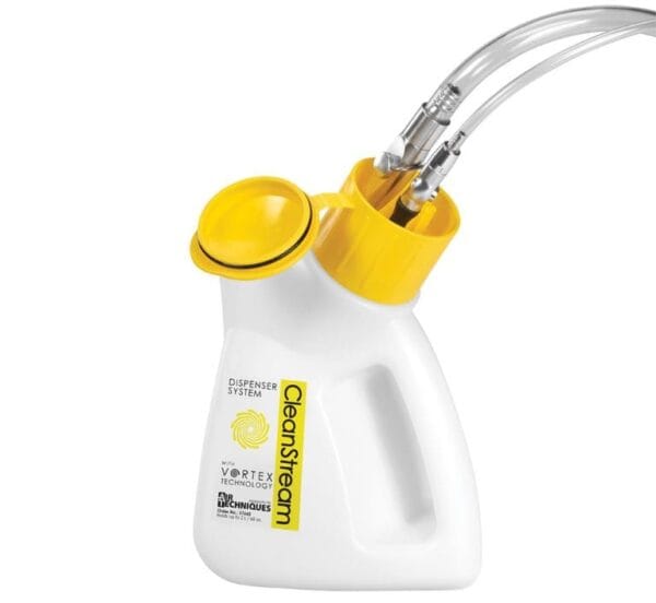El Limpiador del Sistema de Evacuación CleanStream ha sido desarrollado a partir de años de investigación para ofrecer una solución diaria confiable en el mantenimiento de sistemas de aspiración dental, tanto húmedos como secos. Su fórmula única penetra en las paredes internas de las líneas, ayudando a eliminar la acumulación de residuos que reduce la succión y genera malos olores.
