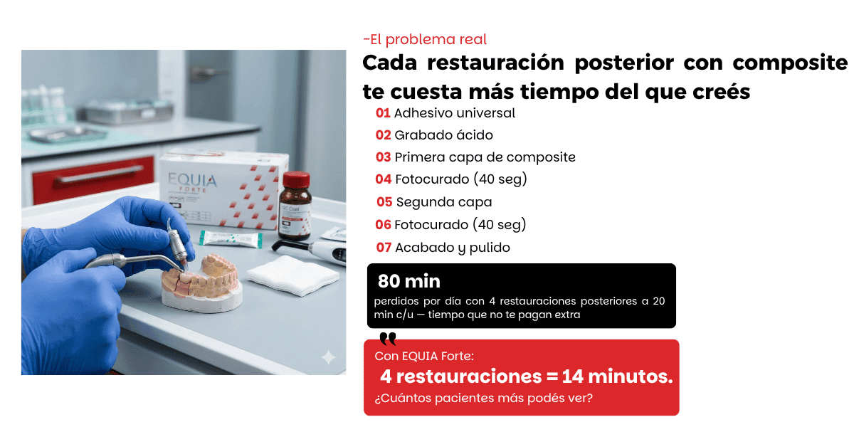 EQUIA® Forte — Restauraciones posteriores en 3.5 minutos. Sin adhesivo. Sin capas.