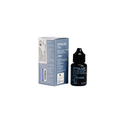 OPTIGLAZE es un agente de recubrimiento diseñado para proporcionar una superficie brillante y estética en restauraciones dentales indirectas, como compósitos, dientes artificiales, prótesis removibles, coronas temporales y cucharillas de acrílico. Este producto es ideal para áreas difíciles de pulir, como fisuras posteriores o espacios interproximales de las restauraciones compuestas. OPTIGLAZE elimina la necesidad del pulido mecánico, lo que facilita y optimiza el proceso de acabado dental, dejando un brillo de alta calidad sin esfuerzo adicional.
