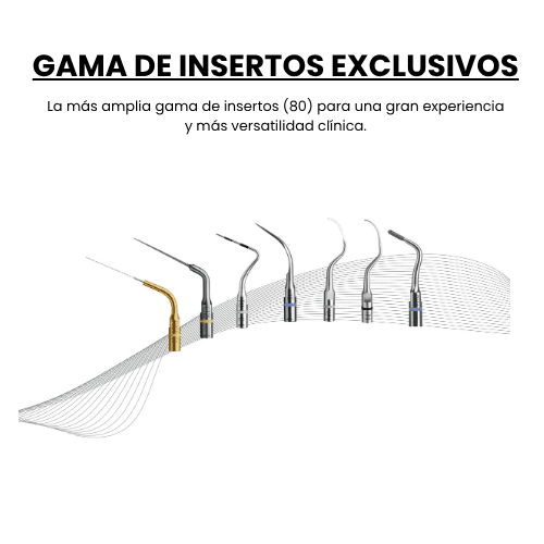 🔹 Compatible con más de 80 insertos exclusivos (profilaxis, periodoncia, endodoncia, restauración).