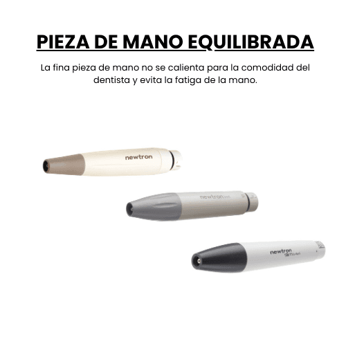 Gracias a la exclusiva tecnología Newtron®, las vibraciones ultrasónicas son lineales, estables y automoduladas según el tipo de inserto y potencia, lo que garantiza una acción eficaz con mínima agresión al esmalte o tejidos blandos. El resultado: tratamientos más seguros, menos molestos para el paciente y clínicamente superiores.