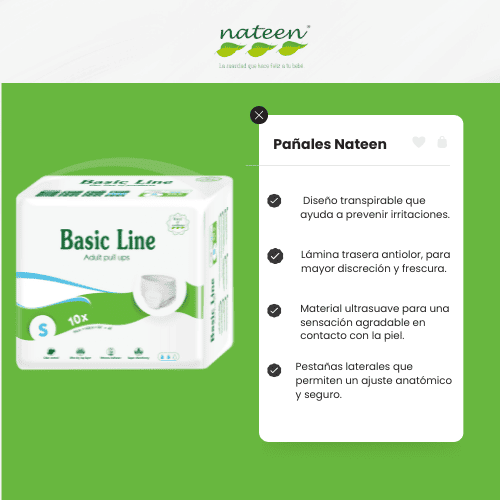 Fabricados en Estados Unidos bajo altos estándares de calidad, los pañales Nateen son una opción profesional para el cuidado diario de personas con incontinencia moderada, ya sea en instituciones de salud, residencias geriátricas o en casa.