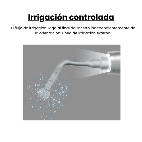El flujo de irrigación alcanza siempre la punta del inserto sin importar su orientación. Su línea externa facilita el mantenimiento y visibilidad.