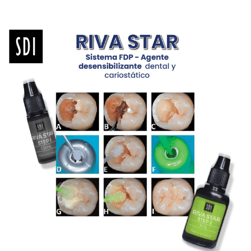 Desarrollado con más de 50 años de experiencia en investigación dental, Riva Star es un sistema patentado de fluoruro de diamina de plata (SDF) diseñado para desensibilizar el dolor dental de manera inmediata y duradera. Este innovador tratamiento ofrece una solución rápida, efectiva y mínimamente invasiva, integrando prevención, remineralización y procedimientos de mínima intervención.