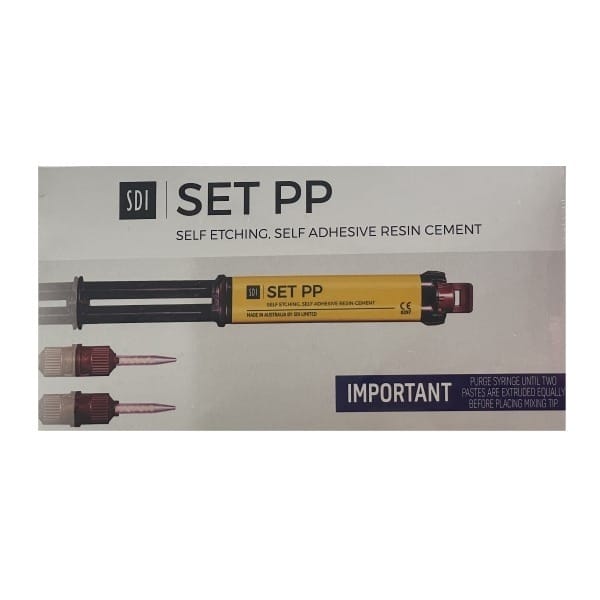 seT PP es un cemento resinoso autoadhesivo de SDI, formulado para una cementación eficiente y segura de incrustaciones, coronas, puentes y postes. Gracias a su tecnología ionglass™, libera una gran cantidad de flúor, promoviendo la remineralización de la dentición natural. Su curado dual (fotocurado y autopolimerización) garantiza una excelente fijación en todo tipo de materiales restaurativos.