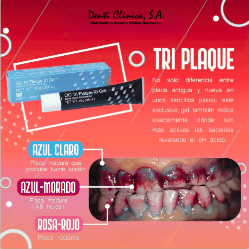Aplicado directamente en boca, GC Tri Plaque ID Gel facilita la visualización clara de las zonas afectadas por placa, incluso después del cepillado. Esto lo convierte en una herramienta poderosa tanto para diagnóstico como para educación motivacional del paciente.